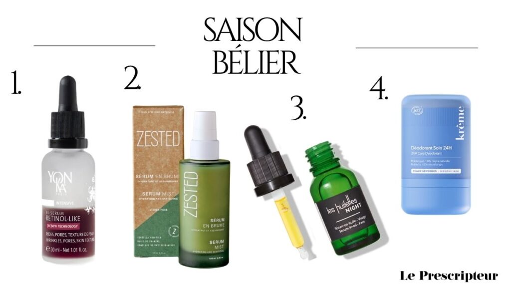 - Déodorant soin 24h, Krème : sportive et hyper active, la Bélier aime rester fraîche quel que soit son emploi temps. Ce déodorant soin 24h, dernière nouveauté de la marque Krème est le produit idéal à glisser dans son sac. Noté 100/100 sur Yuka.