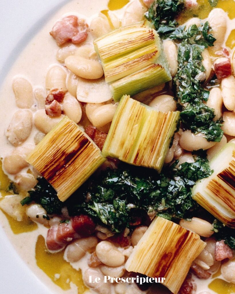 On a sélectionné pour vous trois recettes de son livre, histoire de vous se mettre l’eau à la bouche et on démarre par sa recette de poireaux tendres, haricots et salsa verde !